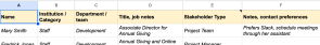 Stakeholder Register Columns